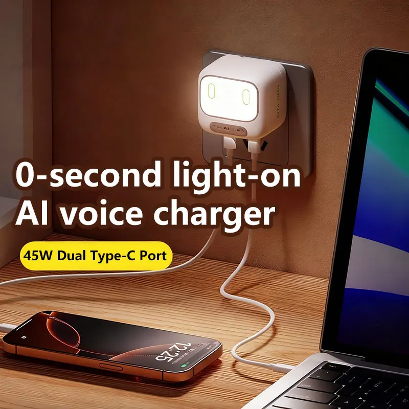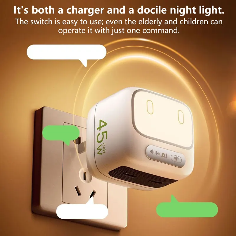 The charger also includes voice control support, allowing you to conveniently control the light without touching the device—perfect for nighttime use.