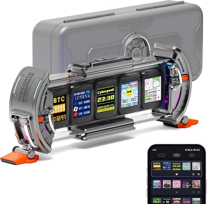 Divoom Times Gate – cyberpunk-style RGB digital clock with smart APP control, WiFi, Bitcoin dashboard & pixel art display. Perfect for gaming room or office setup.
