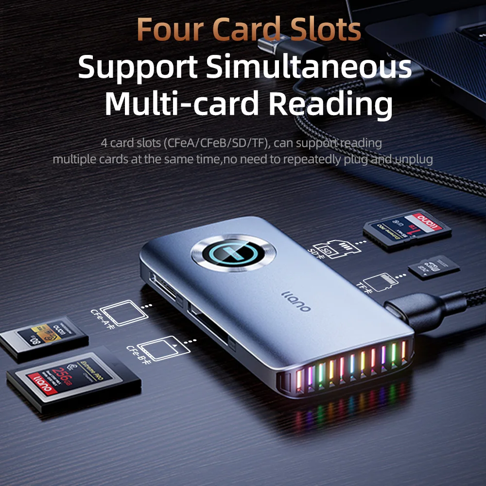 The llano 4-in-1 CFexpress Card Reader is a high-performance data transfer solution designed for photographers, videographers, and professionals who demand speed and reliability. Supporting CFexpress Type A, Type B, UHS-II SD, and Micro SD cards, it offers seamless compatibility with modern cameras, drones, and storage devices.