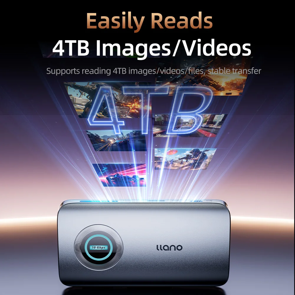 Equipped with USB 3.2 Gen 2 technology, this card reader delivers blazing-fast transfer speeds up to 10Gbps, allowing you to move large files, 4K/8K videos, and high-resolution photos in seconds.